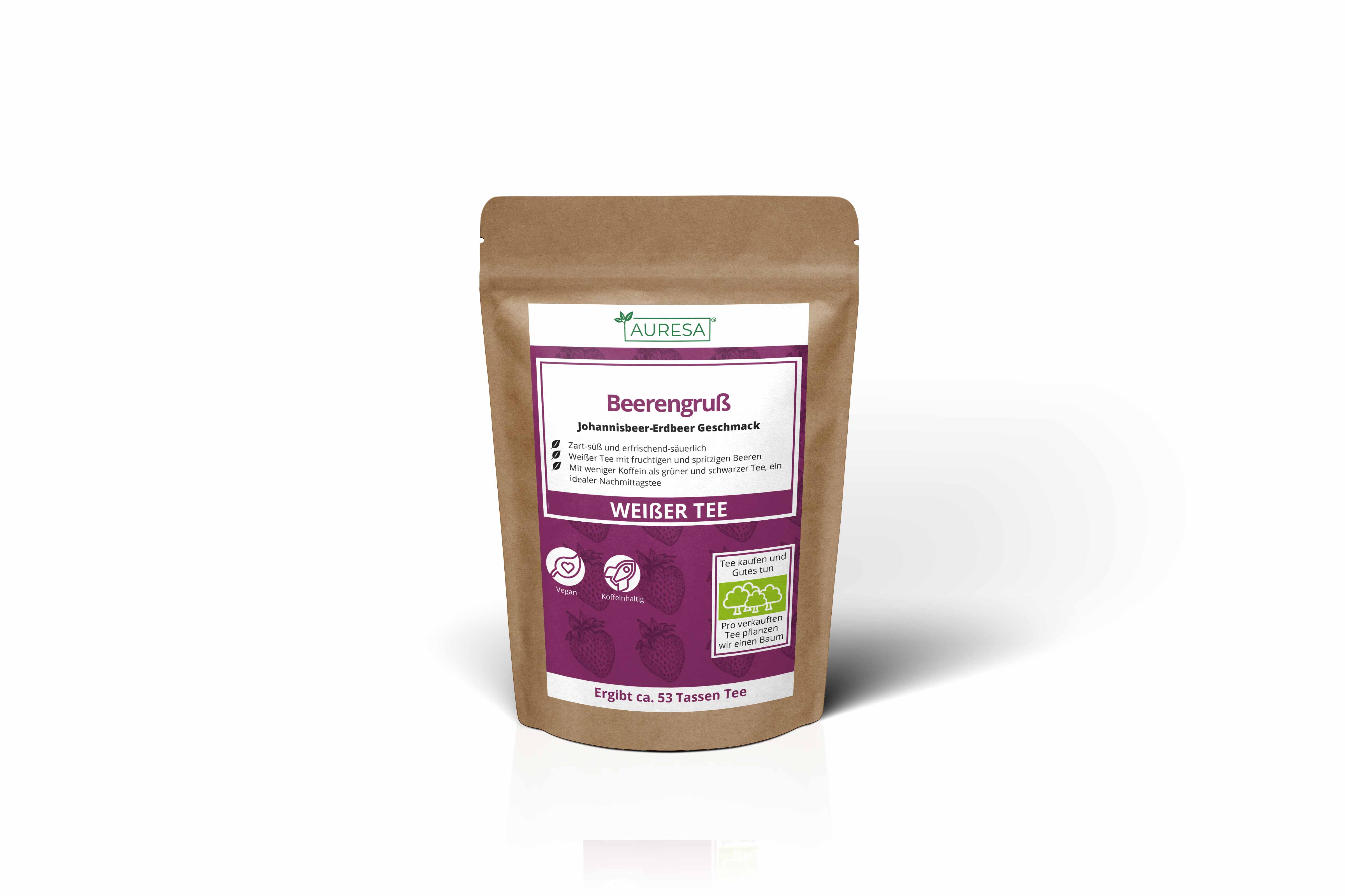 Le thé en vrac est conditionné en trois versions différentes avec différentes quantités de contenu, qui peuvent être consultées sous "Quantité". 1. Doypack (pochette debout) Les sachets debout ont une encoche de déchirure des deux côtés afin que la soudure qui protège le thé puisse être facilement déchirée. De plus, tous les doypacks sont équipés d'un verrou à pression refermable. Les sachets debout sont sans danger pour les aliments, stables, inodores et insipides. 2. verre Bocaux de stockage de haute qualité avec fermetures en liège pour un stockage et un remplissage protégés. Les verres à thé sont hygiéniques, faciles d'entretien et lavables au lave-vaisselle et ont un diamètre de 70 mm (zone de remplissage Ø 39 mm) et une hauteur de 130 mm. 3. Sac tubulaire La quantité vendue 1000g est envoyée dans un sac tubulaire non refermable.