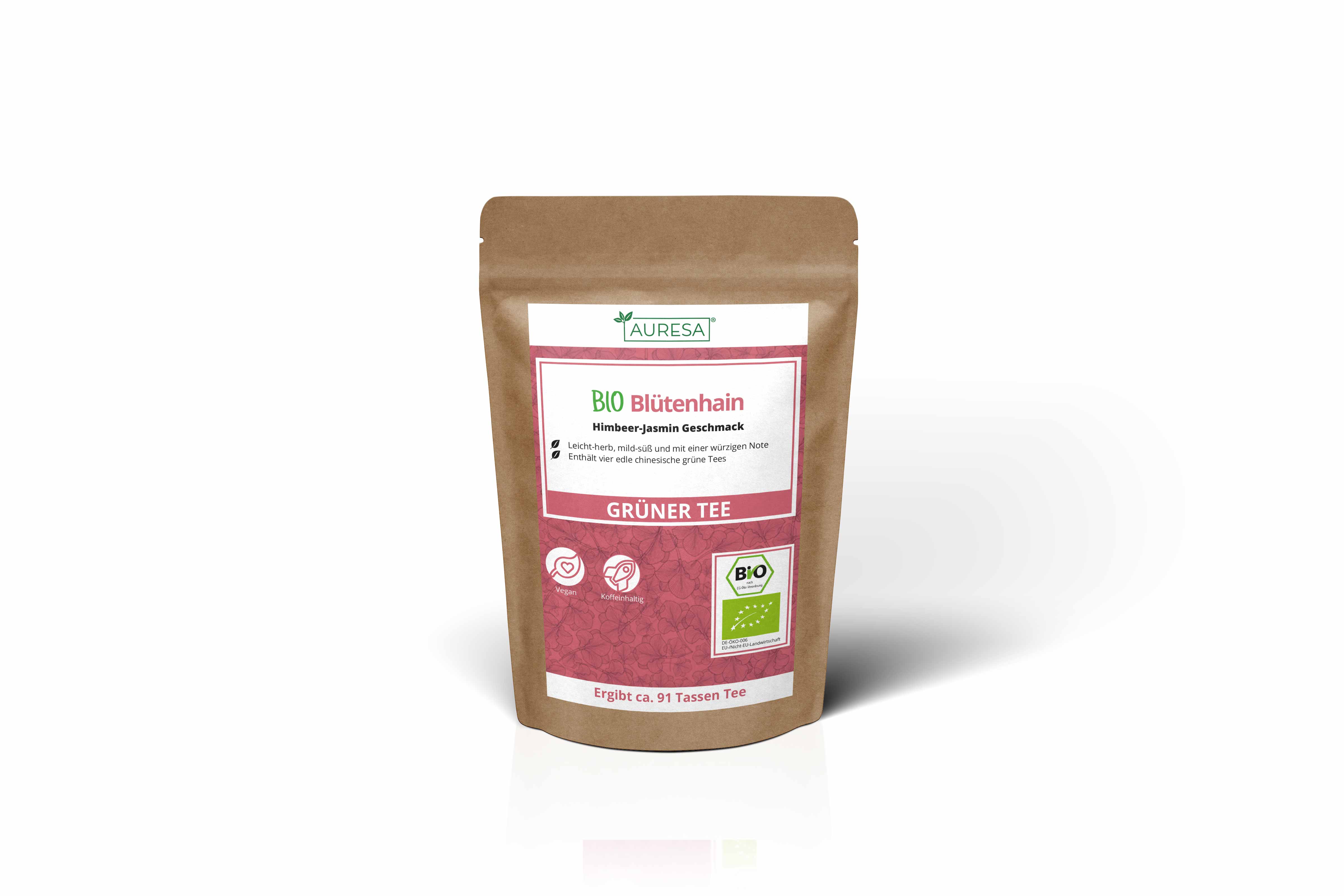 Le thé en vrac est conditionné en trois versions différentes avec différentes quantités de contenu, qui peuvent être consultées sous "Quantité". 1. Doypack (pochette debout) Les sachets debout ont une encoche de déchirure des deux côtés afin que la soudure qui protège le thé puisse être facilement déchirée. De plus, tous les doypacks sont équipés d'un verrou à pression refermable. Les sachets debout sont sans danger pour les aliments, stables, inodores et insipides. 2. verre Bocaux de stockage de haute qualité avec fermetures en liège pour un stockage et un remplissage protégés. Les verres à thé sont hygiéniques, faciles d'entretien et lavables au lave-vaisselle et ont un diamètre de 70 mm (zone de remplissage Ø 39 mm) et une hauteur de 130 mm. 3. Sac tubulaire La quantité vendue 1000g est envoyée dans un sac tubulaire non refermable.
