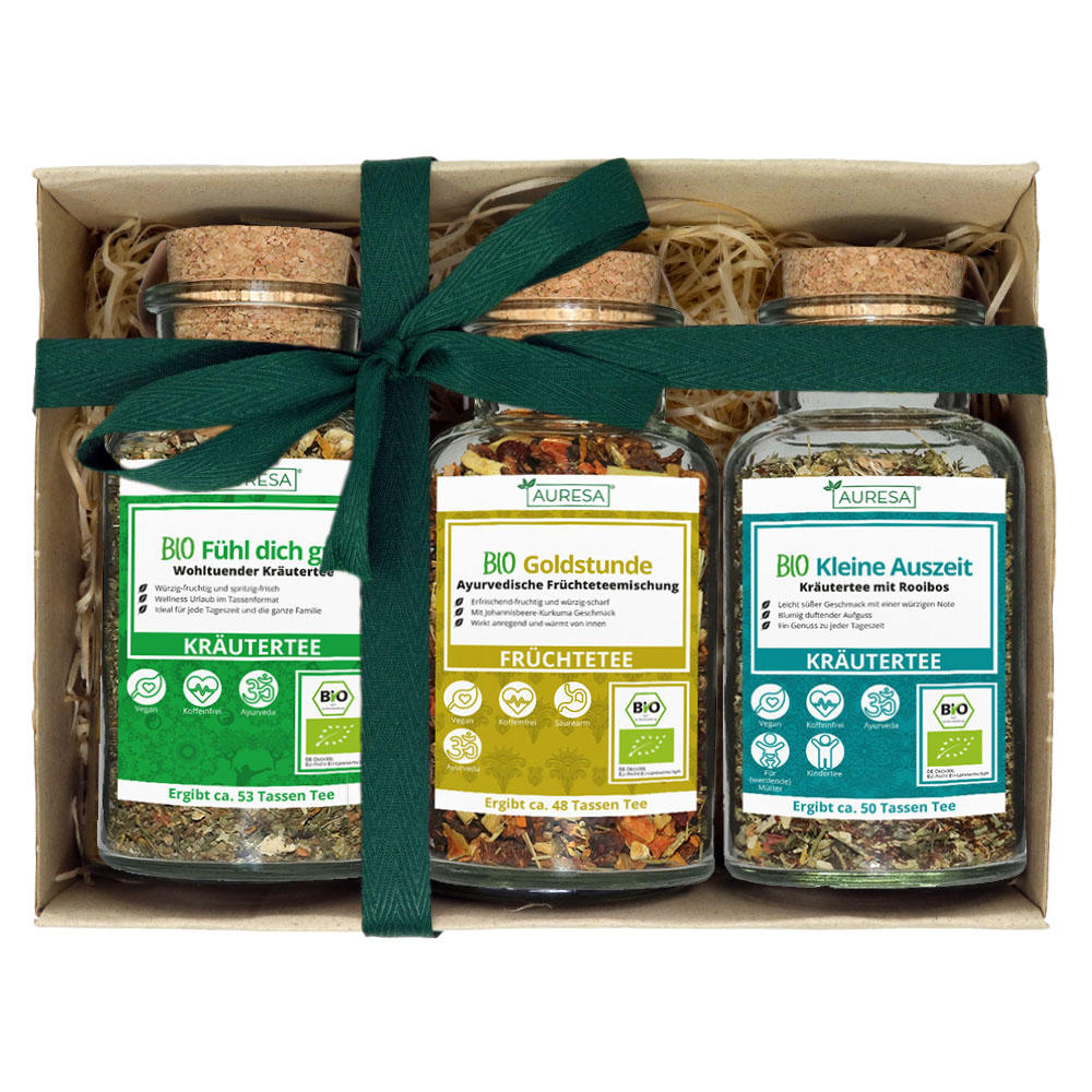 Le nom Auresa est dérivé du mot latin "aurum", qui signifie "or". Parce que nos thés sont aussi nobles et exclusifs que le beau métal. Nous vous offrons un excellent service, avec d'excellentes connaissances spécialisées et des conseils qualifiés.